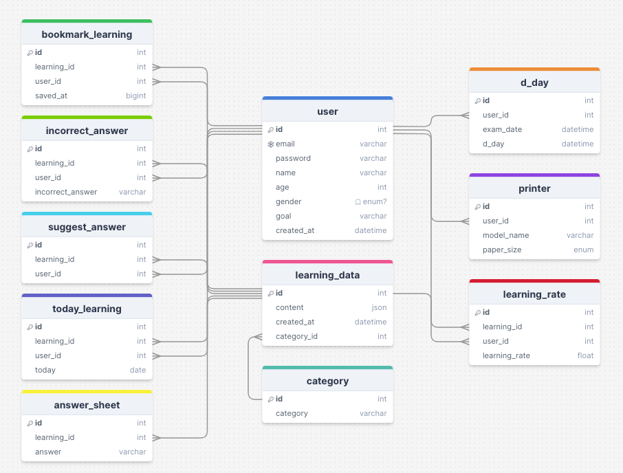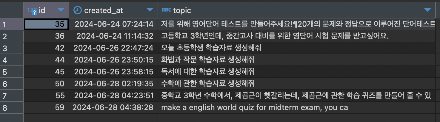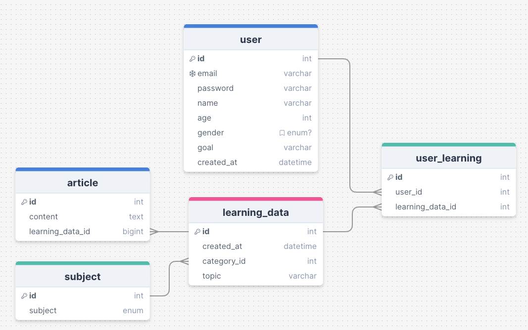 저는 프로젝트에서 DB 설계를 맡아 생성된 교육 자료를 DB에 저장하고 활용하는 기능들을 구현했습니다.
