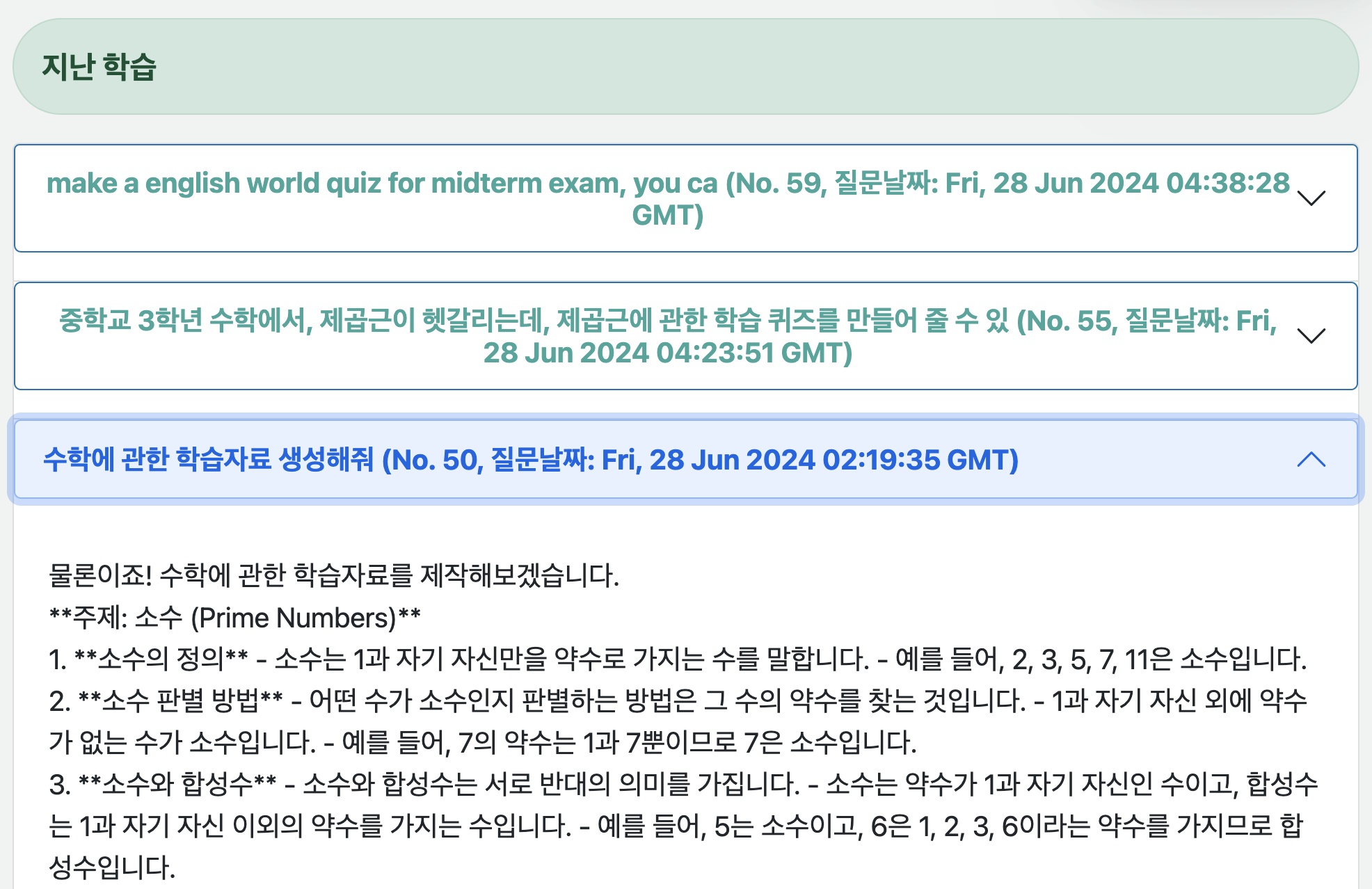 저희 팀에서는 GPT 엔진을 활용한 개인 맞춤형 교육 자료를 생성하는 서비스를 만들었습니다.
