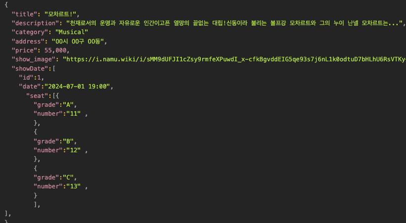 - 잔여 좌석으로 두고 데이터를 추가했을 시 좌석을 포함하는 테이블 공연 일정이 추가된다면 잔여 좌석을 총 개수만큼 다시 추가해서 데이터베이스에 추가 해줘야 했습니다. 예시로는 3개만 추가했으나 만약 100개 정도의 좌석 정보를 갖게 된다면 매번 일정을 추가할 때마다 꽤 많은 데이터를 매번 추가 해줘야 할 것입니다.
